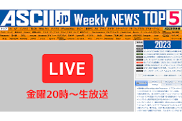 『今週の ASCII.jp注目ニュース』生放送(2023年 10/21~10/27ぶん) 「今週のASCII.jp注目ニュース ベスト5」の目次ページができました! 過去の放送はこちらからご視聴ください。 → 今週のアスキーニュースまとめ「週末NEWS」/ ...